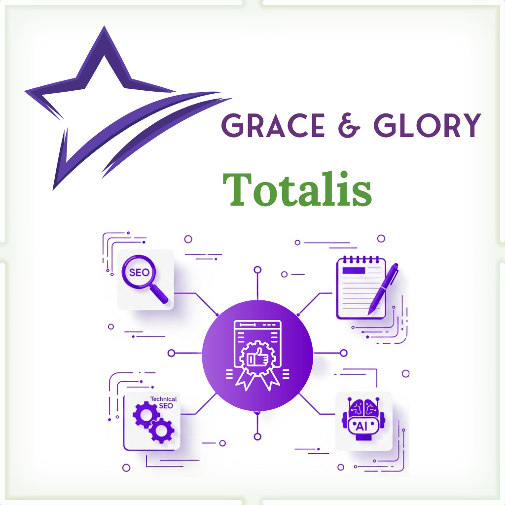 Grace & Glory Totalis is the futuristic definition of limitless potential. Designed for enterprises and complex platforms exceeding standard requirements (8 and above 8 Pages), this package offers a fully tailored ecosystem.